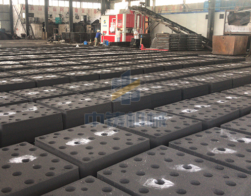 1、全自動造型機打出來砂型直接在鏈板線上循環(huán)輸送,可以是單排雙列,也可以雙排雙列;